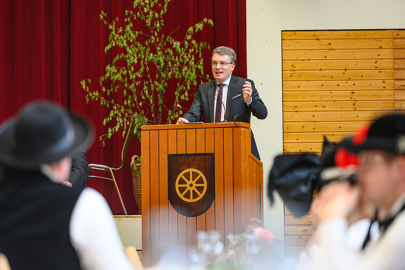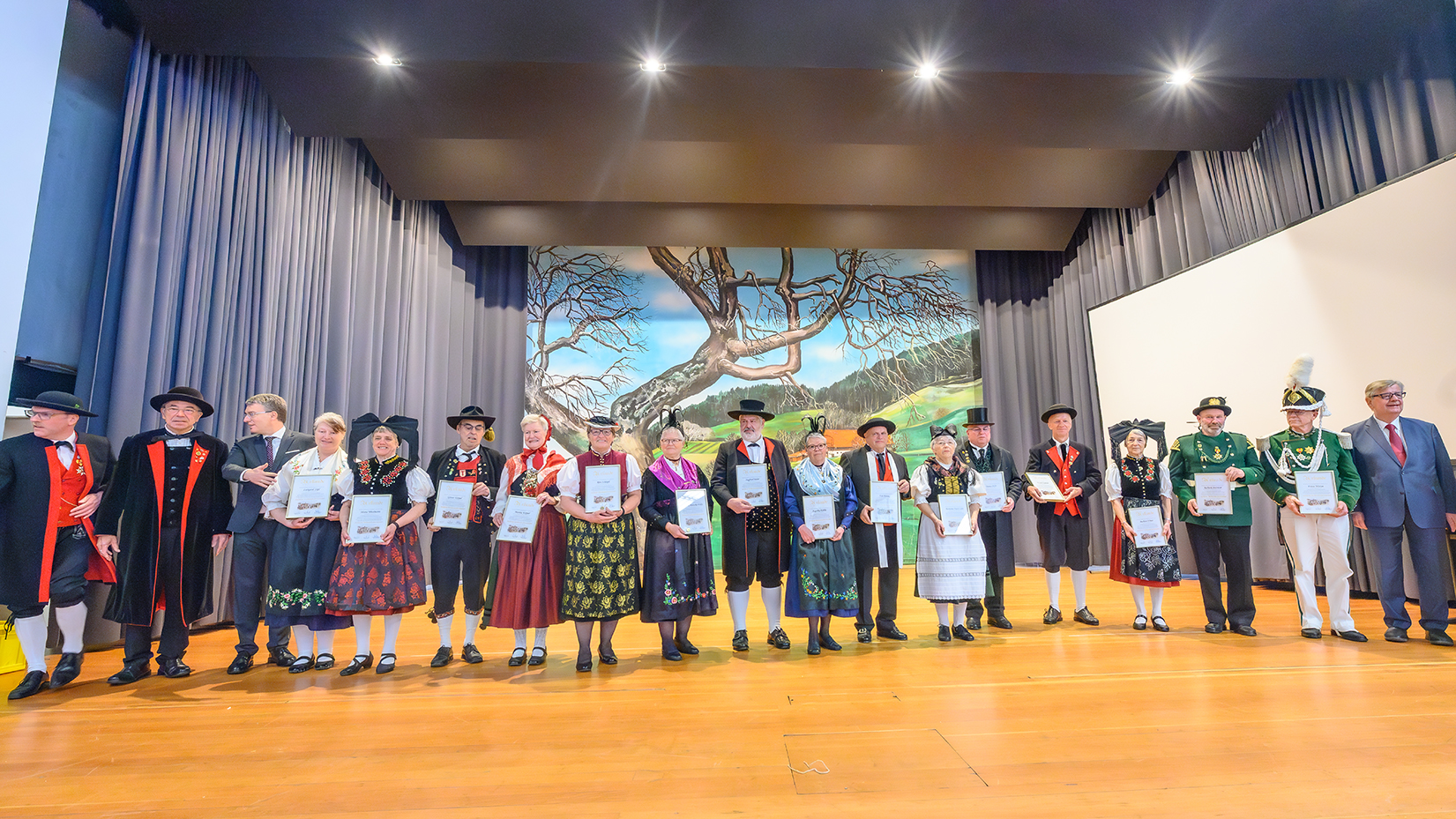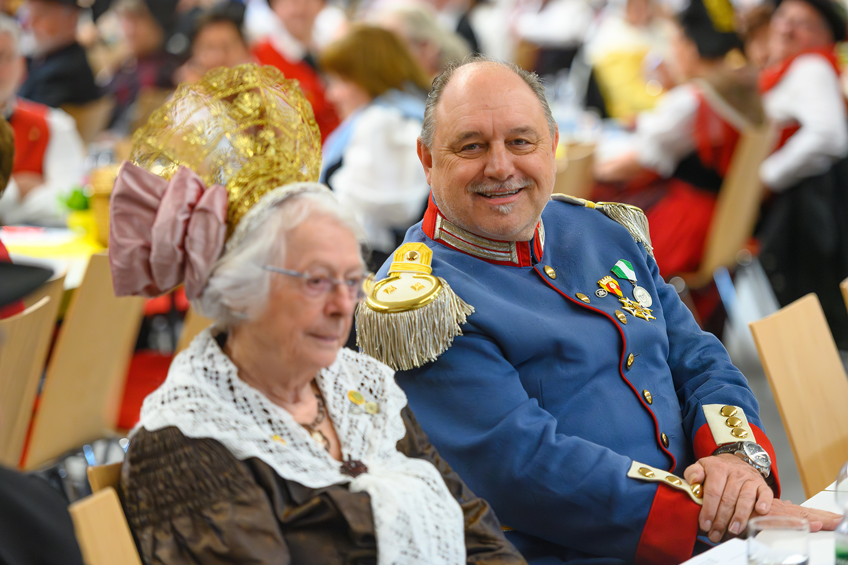 Der ausrichtenden Trachtengruppe Ottenhöfen dankte Präsident Siegfried Eckert im Namen der ganzen Versammlung aufs herzlichste für die wunderschon geschmückte Halle und hervorragende Bewirtung.