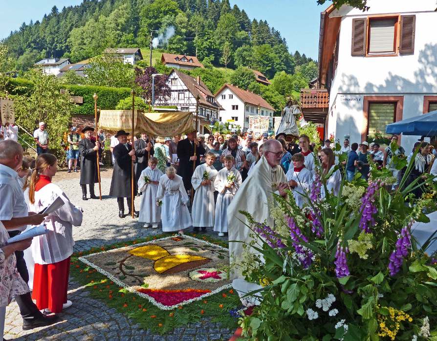 Zum Ende der Prozession bedankte sich Diakon Willy Bröhl bei allen Mitfeiernden, insbesondere bei der Bürgerwehr Wolfach für die Schützenhilfe, der Trachtenkapelle und der Trachtengruppe für die Begleitung der Prozession.